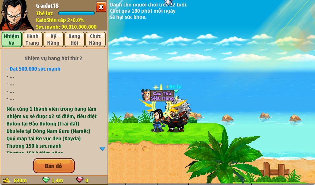 + Trong thế giới ngọc rồng có rất nhiều kẻ mạnh, bạn có thể chính minh sức mạnh của bạn tại Giải siêu hạng, với các đối thủ mạnh không kém